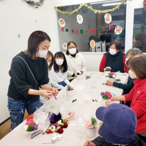 先生からクリスマスの豆知識を聞きながら、和やかな雰囲気のなか作成しました♪